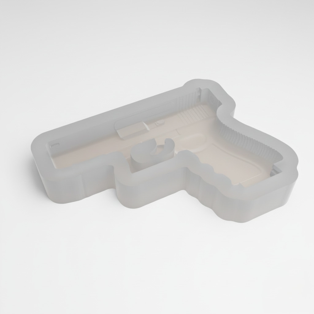 Patvari silikoninė forma su detaliu Glock 19 dizainu. Lanksti medžiaga užtikrina lengvą išėmimą ir daugkartinį naudojimą. Tinka dervai, muilui, vaškui, gipsui ir DIY projektams. Skirta tik dekoratyviniams ir rankdarbių projektams.
