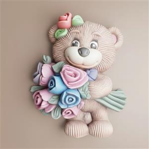 Aukštos kokybės silikoninė forma su lokio su rožėmis dizainu. Lanksti, daugkartinio naudojimo, tinkama dervai, muilui, vaškui, gipsui ir rankdarbiams.