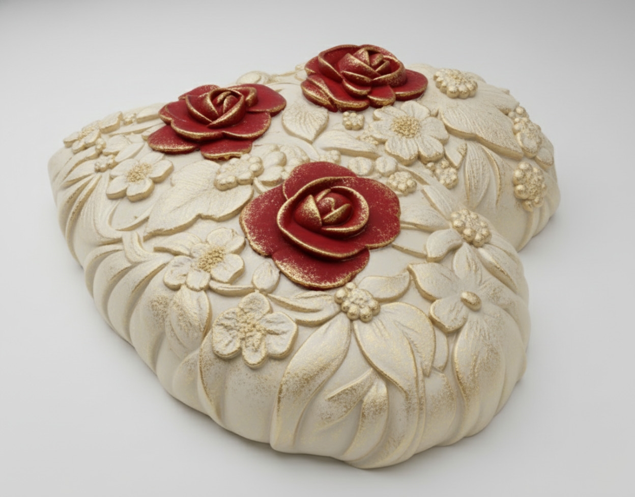 Silikona veidne skaistas un elegantas sirds ar ziediem izgatavošanai. Izgatavota no pārtikas kvalitātes silikona. Var izmantot ar pārtiku, vasku, ziepēm u.c. materiāliem.